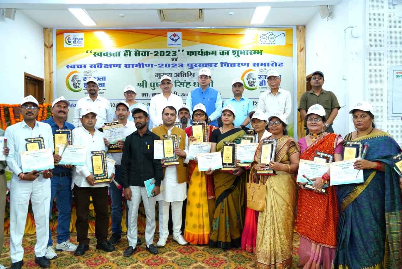 देहरादून : सोमवार को मुख्यमंत्री पुष्कर सिंह धामी ने मुख्यमंत्री आवास स्थित मुख्य सेवक सदन में स्वच्छता सेवा पखवाड़ा-2023 का शुभारंभ किया। कार्यक्रम में ‘स्वच्छ सर्वेक्षण ग्रामीण-2023’ से मुख्यमंत्री ने 15 ग्राम पचायतों को सम्मानित किया। मुख्यमंत्री ने इस अवसर पर स्वच्छता के क्षेत्र में सराहनीय कार्य करने वाले 05 पर्यावरण मित्रों को भी सम्मानित किया। ‘स्वच्छता ही सेवा गीत’ का भी इस अवसर पर मुख्यमंत्री ने विमोचन किया।