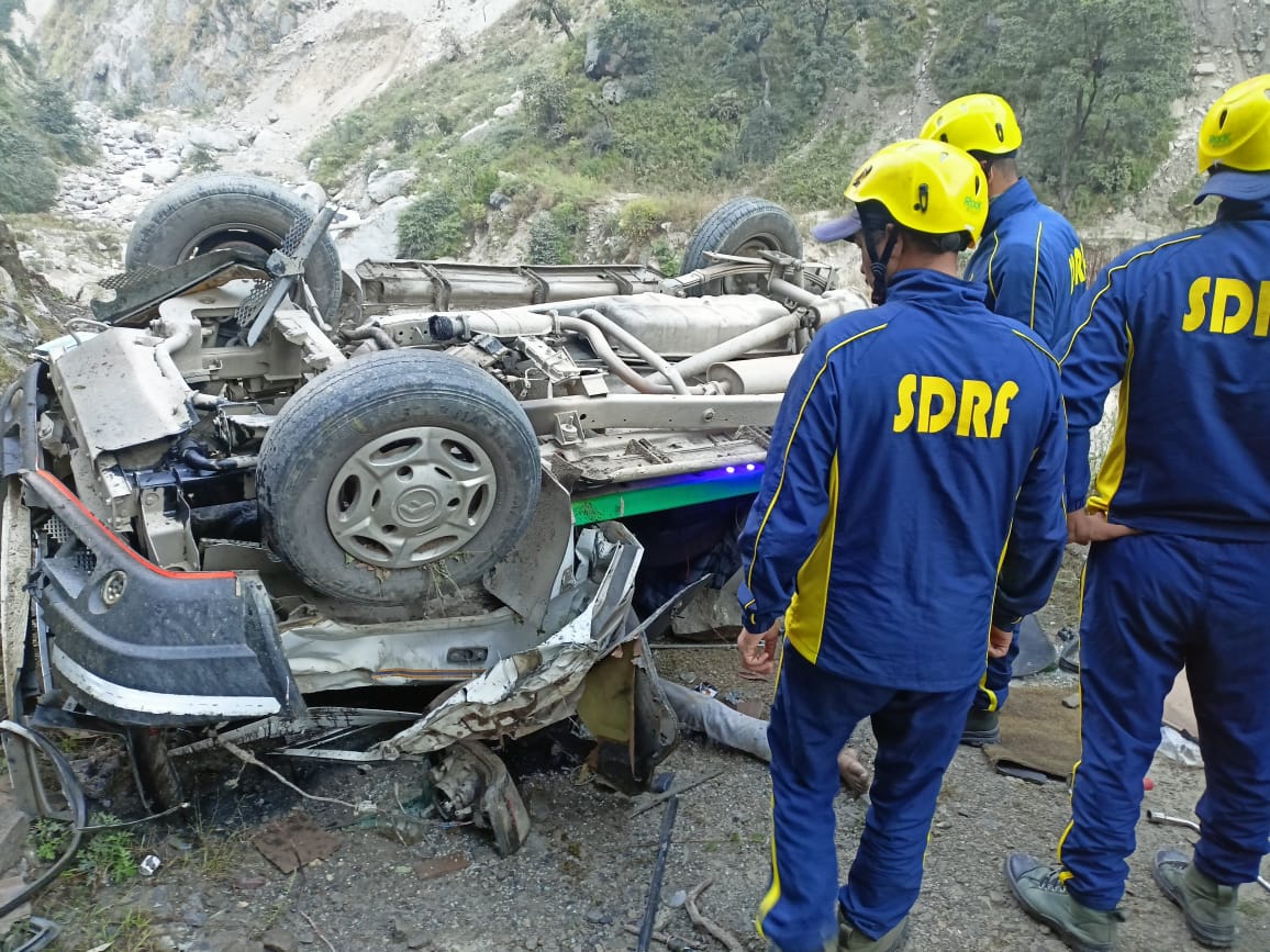 SDRF रेस्क्यू टीम द्वारा घटनास्थल पर पहुँचकर लगभग 50 मीटर गहरी खाई में उतरकर दुर्घटनाग्रस्त वाहन तक पहुँच बनाई व कड़ी मशक्कत करते हुए वाहन में फंसे शव को बाहर निकाला जिसके उपरांत बॉडी बैग के माध्यम से शव को मुख्य मार्ग तक पहुँचाकर जिला पुलिस के सुपर्द किया गया।