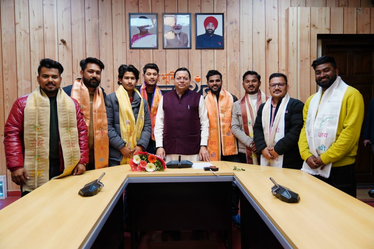 देहरादून : रविवार को मुख्यमंत्री पुष्कर सिंह धामी से मुख्यमंत्री आवास में उत्तराखण्ड के युवाकलाकार लोकगायक हरू जोशी, नीरज चुफाल के साथ कॉमेडियन सौरभ सिंह एवं सिनेमा जगत से विट्टू मंमगांई, अशुतोष कुमार, देवेन्द्र सिंह खोलिया तथा गौरव राणा ने भेंट की।
