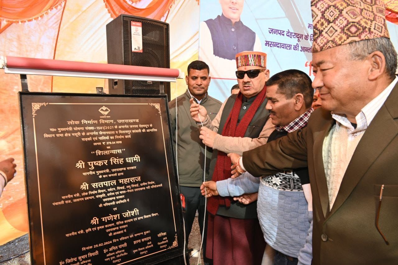 देहरादून : काबीना मंत्री गणेश जोशी ने रविवार को देहरादून में मसूरी विधानसभा क्षेत्र के अर्न्तगत जैंतनवाला में जिला योजना के अंतर्गत 11 लाख रुपए की विभिन्न विकास योजनाओं का लोकार्पण तथा मुख्यमंत्री घोषणा के तहत रुपये 279.84 लाख की लागत से बनने वाली जैन्तनवाला, विलासपुर काण्डली व मसन्दावाला की आन्तरिक सड़को का शिलान्यास किया। कैबिनेट मंत्री गणेश जोशी ने अधिकारियों को 06 माह के भीतर विकास कार्यों को पूर्ण करने के निर्देश दिए गए। उन्होंने अधिकारियों को निर्माण कार्यों में गुणवत्ता का विशेष ध्यान रखने के निर्देश भी दिए।
