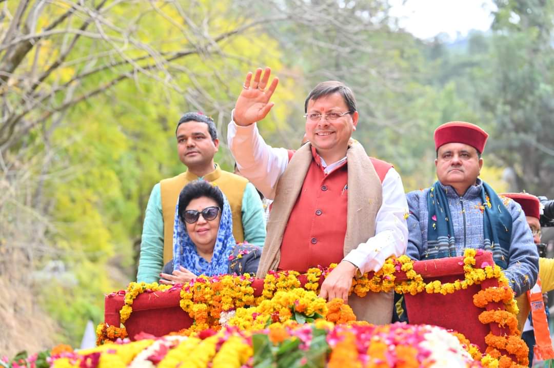 उत्तरकाशी : मुख्यमंत्री पुष्कर सिंह धामी ने मंगलवार को बड़कोट, उत्तरकाशी में मुख्य बाजार, बड़कोट से रामलीला मैदान तक आयोजित रोड शो में प्रतिभाग किया। इस दौरान हजारों की संख्या में मौजूद महिलाओं, क्षेत्रीय जनता ने मुख्यमंत्री का पुष्प वर्षा कर स्वागत किया। रंवाई क्षेत्र की जनता के भव्य स्वागत से मुख्यमंत्री अभिभूत नज़र आए। मुख्यमंत्री ने भी लोगों पर पुष्प वर्षा कर उनका अभिनंदन किया।