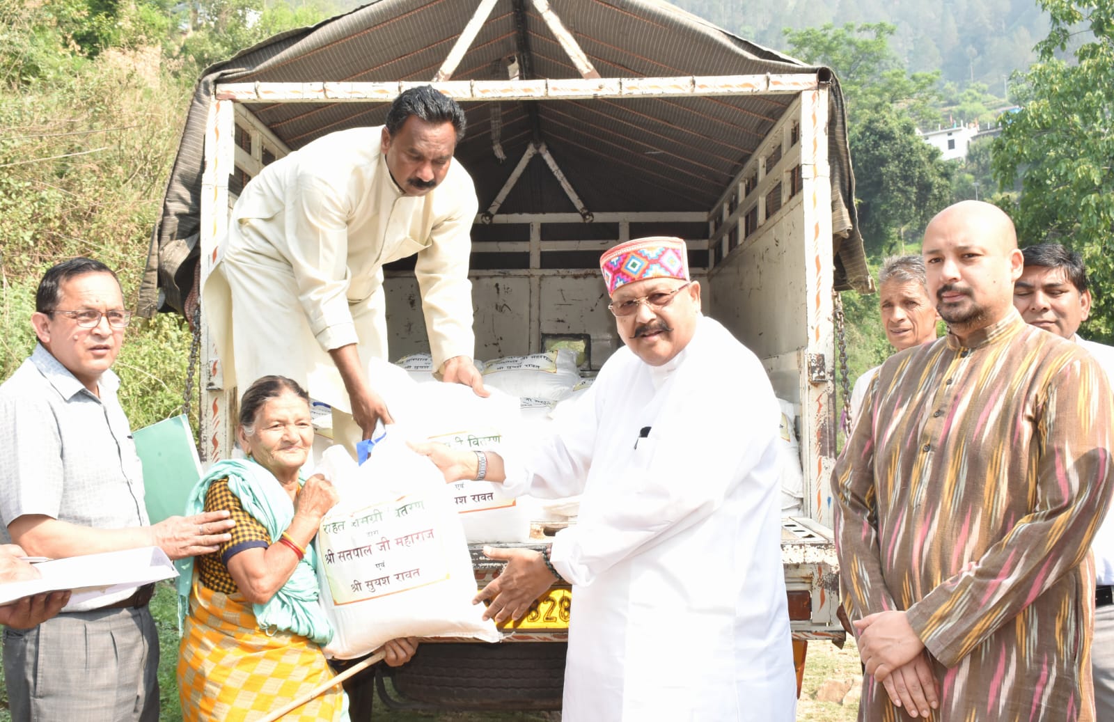 पौड़ी गढ़वाल : विधानसभा क्षेत्र चौबट्टाखाल के तहसील बीरोंखाल के अन्तर्गत ग्राम सुकई में गत माह आयी आपदा से प्रभावित परिवारों को क्षेत्रीय विधायक प्रदेश के कैबिनेट मंत्री सतपाल महाराज और उनके पुत्र भाजपा युवा मोर्चा प्रदेश कार्यकारिणी सदस्य सुयश रावत ने राहत सामग्री का वितरण किया।