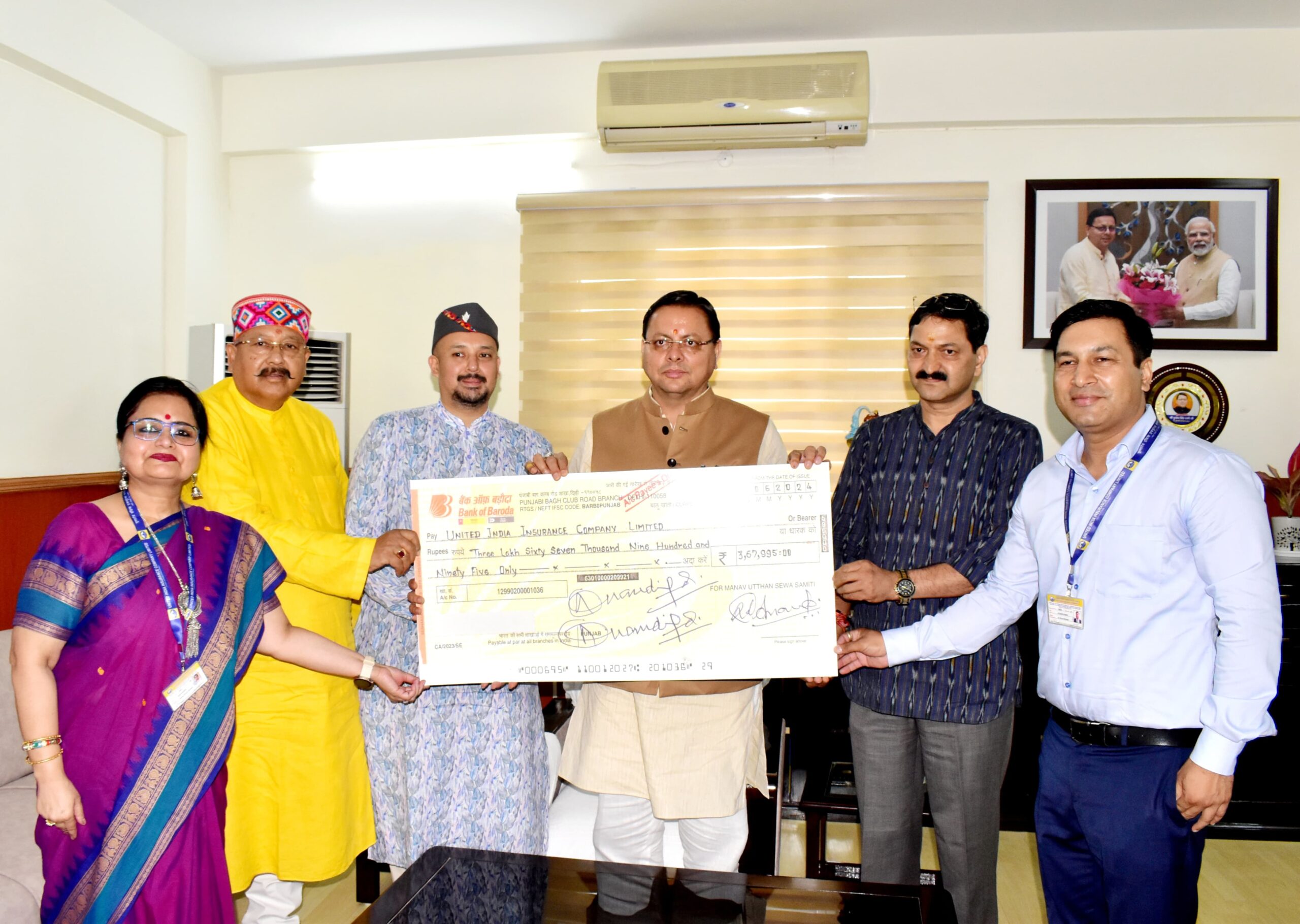 प्रदेश के कैबिनेट मंत्री सतपाल महाराज ने अपनी संस्था मानव उत्थान सेवा समिति की ओर से चारों धामों में आने वाले दर्शनार्थियों की सुरक्षा हेतु यूनाइटेड इंडिया इंश्योरेंस कंपनी लिमिटेड के द्वारा श्री बद्रीनाथ केदारनाथ मंदिर समिति के माध्यम से 1000000 (दस करोड़ रुपए) का दुर्घटना सुरक्षा बीमा दिया गया है। मंत्री सतपाल महाराज एवं उनके कनिष्ठ पुत्र सुयश रावत ने गुरुवार को सचिवालय स्थित मुख्यमंत्री कार्यालय में बीमा प्रीमियम का चैक संयुक्त रुप से मुख्यमंत्री पुष्कर सिंह धामी और श्री बद्रीनाथ श्री केदारनाथ मंदिर समिति के अध्यक्ष राजेंद्र अजय को सौंपा।