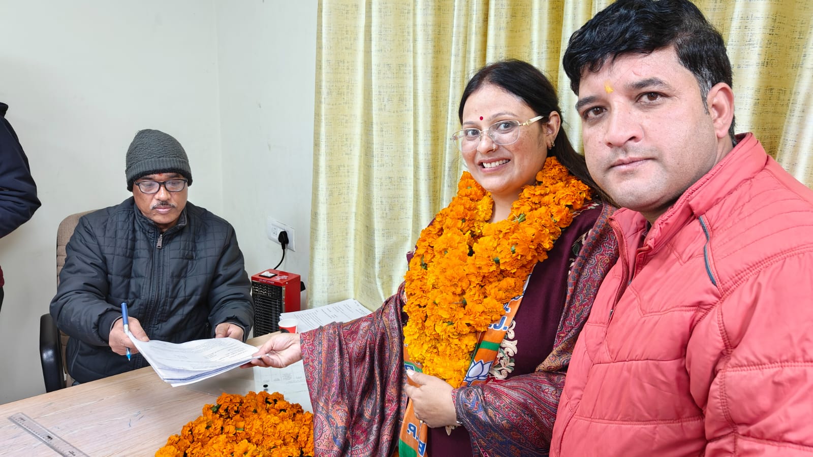 इस मौके पर भाजपा की ओर से सभासद पद के लिए संध्या ऐनी, निर्मला पंवार अग्रवाल, अमित भटट, गीता कुमाई, कुणाल रावत, अरूण कुमार चंदोलिया, व भगत सिंह ने नामांकन किए।