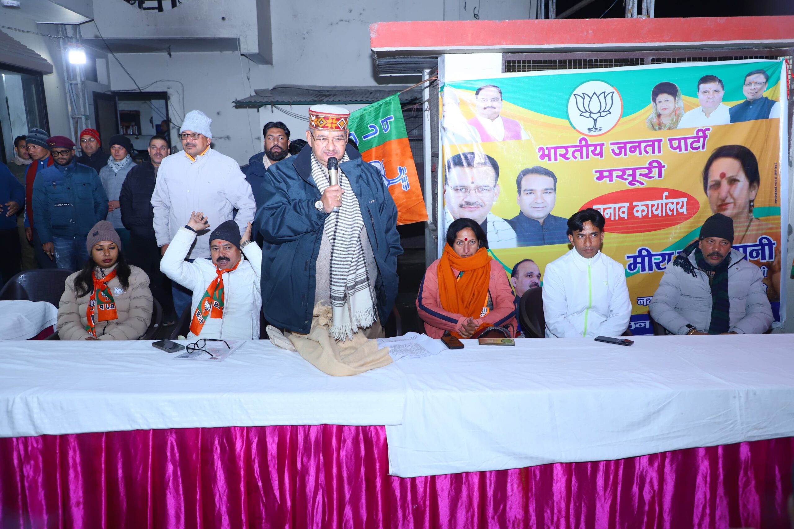 मसूरी : कैबिनेट मंत्री गणेश जोशी ने आज मसूरी चुनाव कार्यालय में आगामी नगर पालिका परिषद मसूरी के चुनावों के दृष्टिगत वाल्मीकि समाज के लोगों के साथ संवाद कर भाजपा नगर पालिका परिषद चेयरमैन प्रत्याशी मीरा सकलानी एवं अन्य सभासदगणों के पक्ष में मतदान की अपील की।