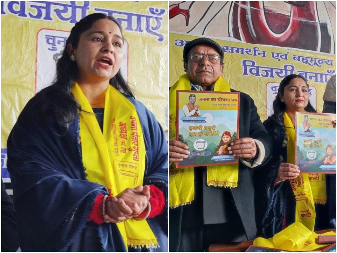 माल रोड स्थित एक रेस्टोरेंट के सभागार में आयोजित घोषणा पत्र जारी करते हुए अध्यक्ष पद की निर्दलीय प्रत्याशी उपमा पंवार गुप्ता ने कहा कि गत बोर्ड ने जो शहर के विकास कार्य किए उससे पूरी मसूरी जानती है व जो कार्य छूट गये उन्हें पूरा करने का प्रयास किया जायेगा। उन्होंने कहा कि मसूरी के बंद पडे सेंट मेरी अस्पताल को खोला जायेगा, महिलाओं को रोजगार के अवसर प्रदान किए जायेगें व पर्यटकों के लिए पहाडी व्यंजनों को वरीयता देंगे जिसमें सभी कर्मी महिलाएं ही होगी, महिलाओं के लिए पिंक शौचालय बनाये जायेंगे, साथ ही मसूरी के पर्यावरण के संरक्षण के लिए कार्य करेंगे व जार्ज एवरेस्ट जाने के लिए लोकल को निःशुल्क व्यवस्था की जायेगी। उन्होंने कहा कि रोजगार के लिए स्किल डेवलेपमेंट करवार छोटे छोटे कार्य किए जायेगे। आवासीय समस्या का समाधान किया जायेगा, व लंढौर में हेरिटेज मार्केट बनायी जायेगी। जनता की समस्याओं के समाधान के लिए हर माह जनता दरबार लगाया जायेगा, एमपीजी कालेज में पुस्तकालय का निर्माण, नये वेंडर जोन बनायेंगे, छोटे छोटे चिल्ड्रर्न्स पार्क, ओपन जिम, कम्युनिटी सेंटर, का निर्माण कराया जायेगा। नगर पालिका कर्मियों को आवासों की मरम्मत की जायेगी, पशु चिकित्सालय, मुहल्ला पार्किंग, शहर को सीसीटीवी कैमरों से जोड़ा जायेगा।