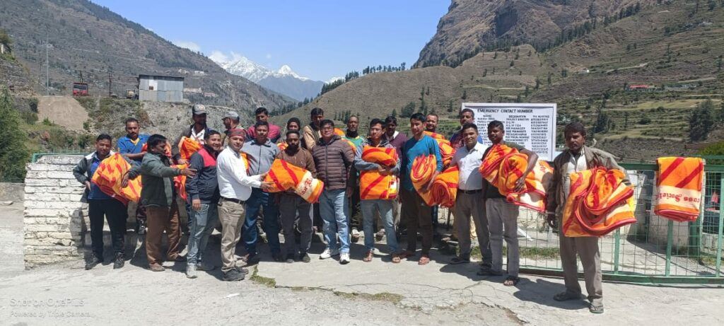 रेड क्रॉस स्थापना दिवस पर यूथ रेड क्रॉस जोशीमठ ने मजदूरों को बांटे कंबल।