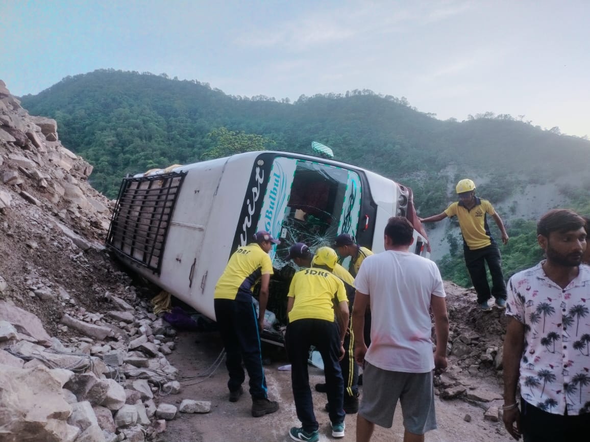 टिहरी गढ़वाल : SDRF ने जानकारी देते हुए बताया कि आज दिनाँक 13 जुलाई 2023 को टिहरी की पुलिस चौकी ब्यासी द्वारा SDRF को सूचना दी गयी कि कौडियाला के पास एक बस अनियंत्रित होने से मार्ग पर पलट गई है।