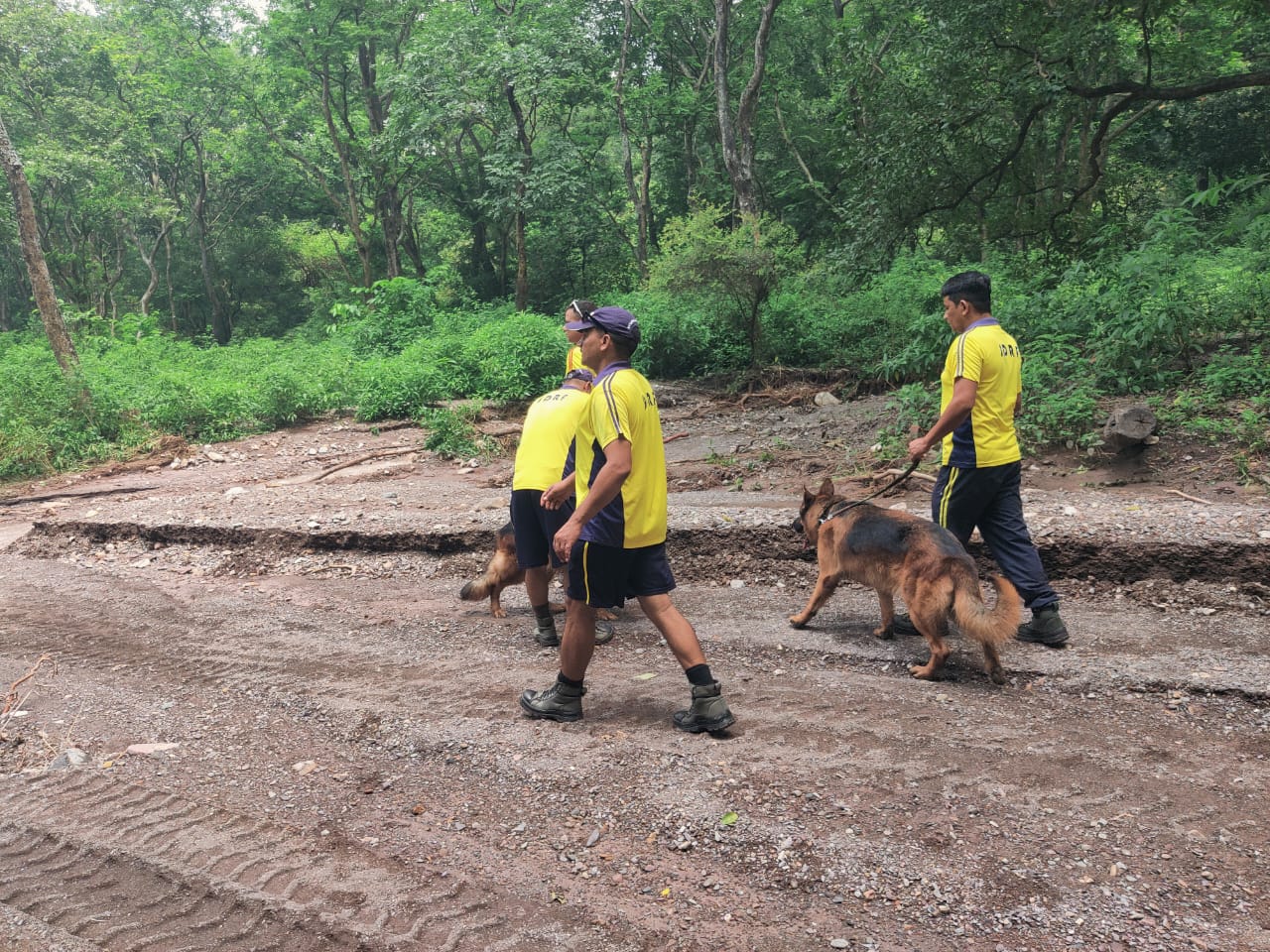 आज दिनाँक 17 अगस्त 2023 को मणिकांत मिश्रा, कमांडेंट SDRF के निर्देशानुसार उक्त घटना में लापता एक महिला व बच्चे की प्रभावी सर्चिंग हेतु वाहिनी मुख्यालय जॉलीग्रांट से सर्चिंग कार्यों में विशेषज्ञ कैनाइन दस्ता(श्वान दल)को घटनास्थल पर भेजा गया है जिनके द्वारा आसपास के संभावित स्थानों पर गहन सर्च किया जा रहा है।