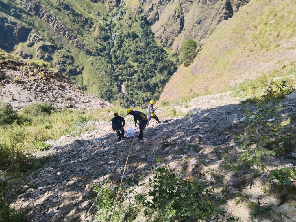 SDRF रेस्क्यू टीम द्वारा त्वरित कार्यवाही करते हुए रोप की सहायता से खाई में नीचे उतरकर उक्त व्यक्ति तक पहुँच बनाई। उक्त व्यक्ति की घटनास्थल पर ही मृत्यु हो गयी थी जिसे SDRF टीम द्वारा कड़ी मशक्कत करते हुए रोप की सहायता से खड़ी चढ़ाई से होते हुए मुख्य मार्ग तक लाकर जिला पुलिस को सौंप दिया गया।