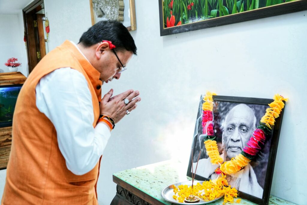 मुख्यमंत्री धामी ने राष्ट्रीय एकता दिवस के अवसर पर सरदार वल्लभ भाई पटेल के चित्र पर श्रद्धा सुमन अर्पित कर श्रद्धांजलि दी।