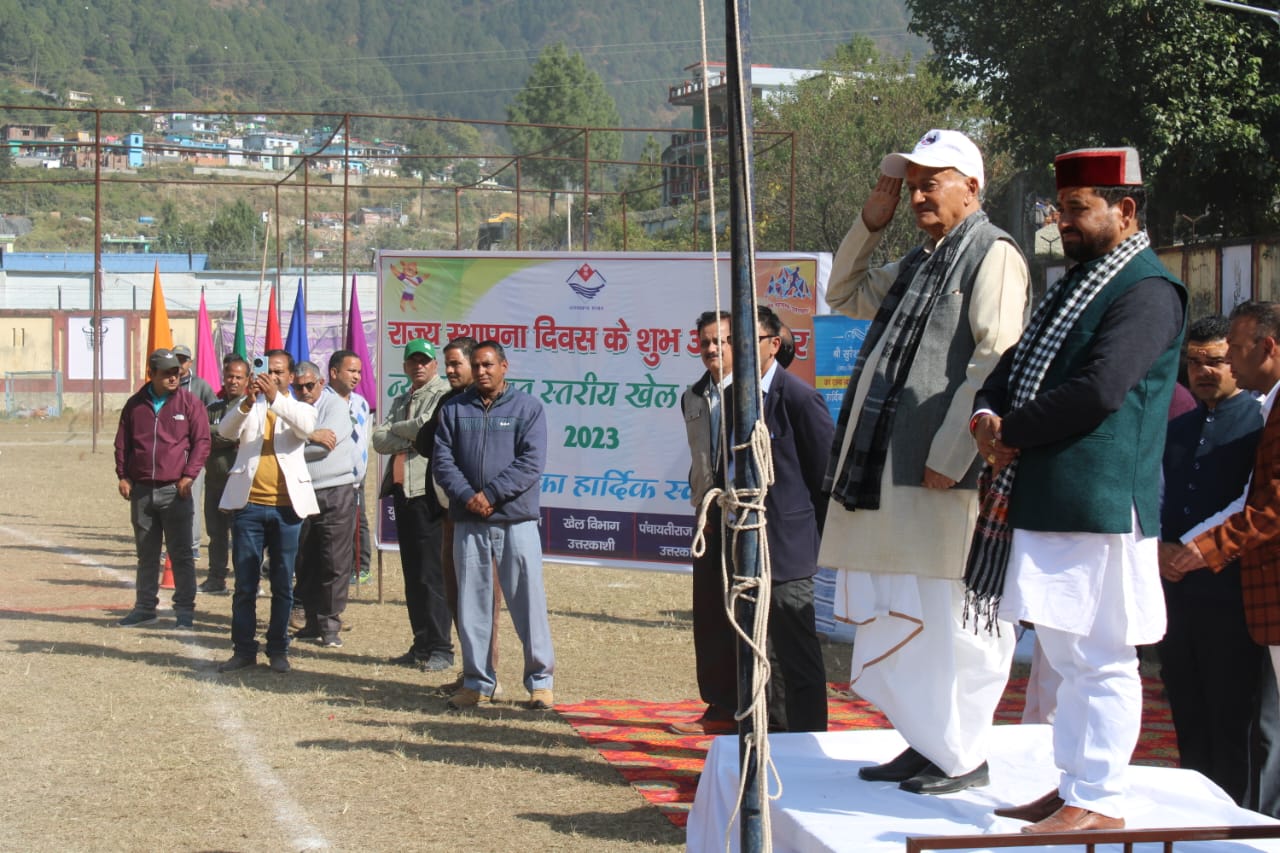 उत्तरकाशी : जनपद में राज्य स्थापना के अवसर पर न्याय पंचायत स्तरीय खेल प्रतियोगिता का शुभारम्भ जनपद सभी 36 में से 26 न्याय पंचायतों में स्थानीय जनप्रतिनिधियों के द्वारा बुधवार को किया गया। इसी अवसर पर भटवाड़ी विकासखण्ड की न्याय पंचायत जोशियाड़ा की मनेरा स्टेडियम में आयोजित अण्डर 14 एवं 17 आयुवर्ग के बालक बालिकओं की खेलकूद प्रतियोगिता का शुभारम्भ कार्यक्रम के मुख्य अतिथि पूर्व राज्यपाल महाराष्ट्र एवं पूर्व मुख्यमंत्री उत्तराखण्ड सरकार भगत सिंह कोशियारी एवं क्षेत्रीय विधायक सुरेश चैहान ने संयुक्त रूप से किया। इस अवसर पर विभिन्न विद्यायल के छात्र-छात्राओं के द्वारा रंगारग कार्यक्रम प्रस्तुत किये गये।