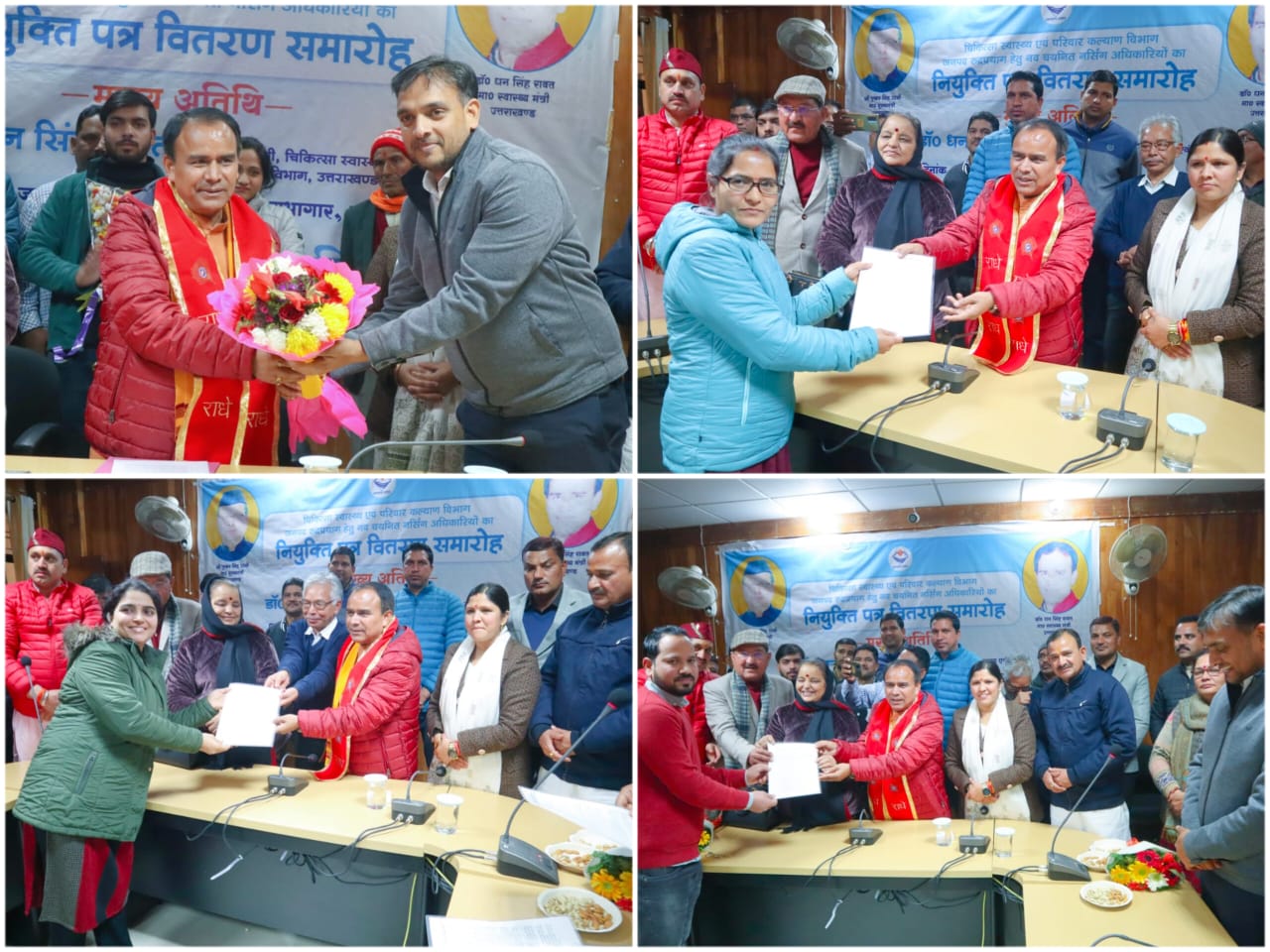 नियुक्ति पत्र पाने वाले नर्सिंग अधिकारियों में सोनिका, अंजू यादव, हर्षिता महर, शीशपाल राणा, राहुल, पूजा रावत, सुष्मिता लाल, पूनम चौहान, सुषमा, अंकिता मौर्य, मंजिता, नवनीत सिंह खाती, श्वेता पांडे आदि को नियुक्ति पत्र वितरित किए गए।