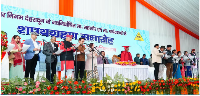 शहर की सरकार ने ली शपथ, मुख्यमंत्री धामी सहित विधायक भी रहे मौजूद