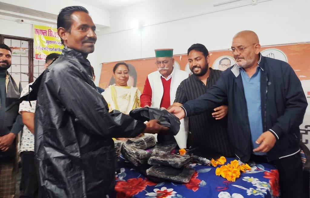 मसूरी : शहर कांग्रेस कार्यालय में आयोजित कार्यक्रम में युवा कांग्रेस के प्रदेश महामंत्री व महानगर जाखन वार्ड नंबर एक के पार्षद सुशांत वोहरा ने मसूरी के रिक्शा, बोझा श्रमिकों व पटरी लगाने वालों को बरसात से बचने के लिए 250 से अधिक रेनकोट व पजामें वितरित किए।