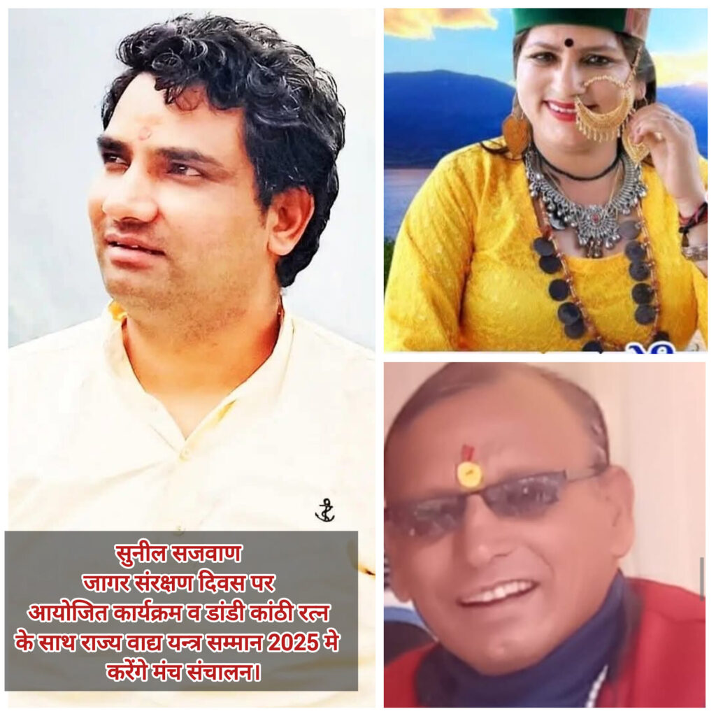 सुनील सजवाण जागर संरक्षण दिवस पर आयोजित कार्यक्रम व डांडी कांठी रत्न के साथ राज्य वाद्य यन्त्र सम्मान 2025 मे करेंगे मंच संचालन।