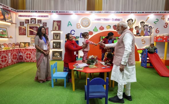 जब प्रधानमंत्री स्टाल से आगे बढ़ने लगे तो बच्चों ने उनसे फोटो खिंचवाने का आग्रह किया। प्रधानमंत्री ने तत्काल बच्चों की बात मानीं और उनके साथ फोटो खिंचवाई। आंगनबाड़ी केंद्र की शिक्षिका प्रियतमा सक्सेना ने बताया कि बच्चे प्रधानमंत्री से मिलकर काफी खुश नजर आए। वह आंगनबाड़ी केंद्र से पांच बच्चों को साथ लेकर आए थे, इनमें से दो बालिकाएं बहुत छोटी थीं, जिन्होंने प्रधानमंत्री के सवालों का सहजता से जवाब दिया।